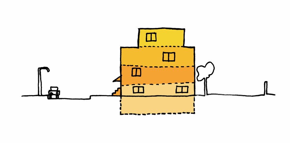 Many homes can accommodate new units by splitting off spaces inside them to create new units. They can be split by floor, side by side, or front to back.